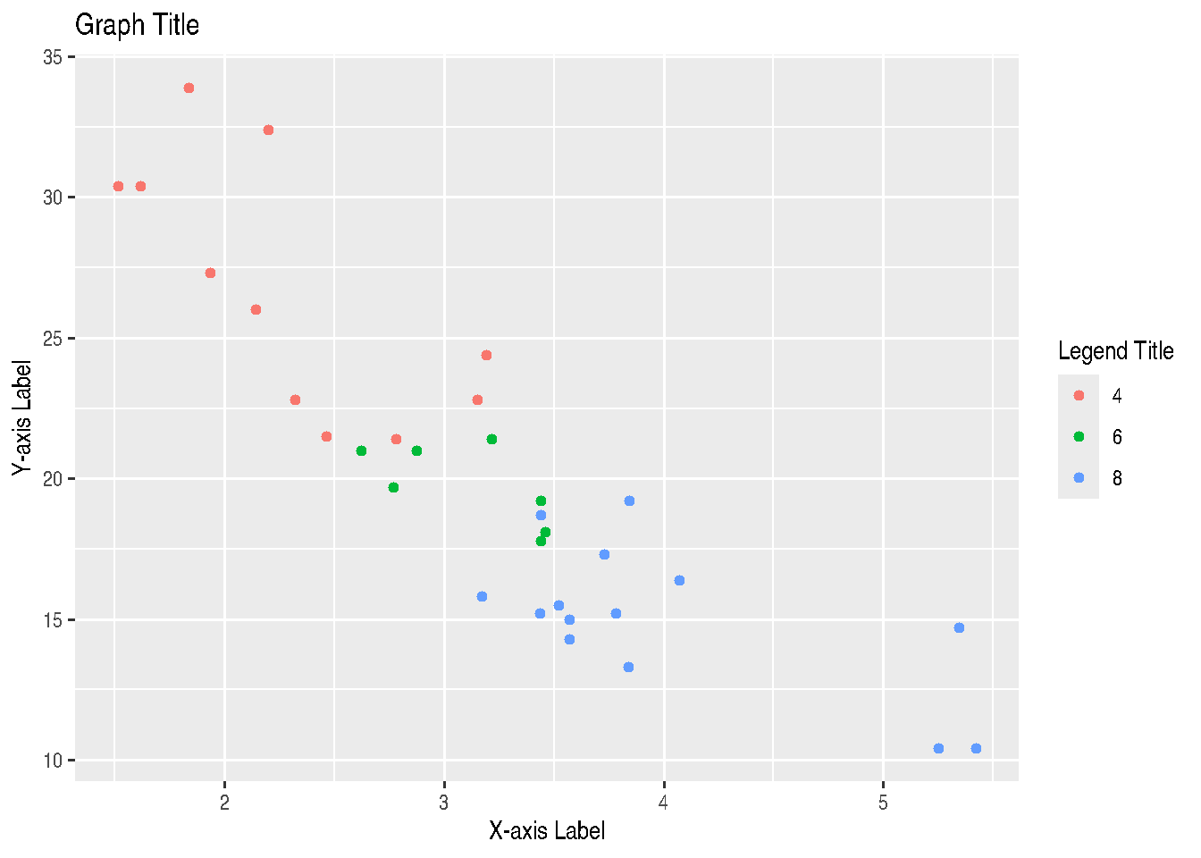 labs(title="Graph Title", x = "X-axis Label", y = "Y-axis Label", colour = "Legend Title") +