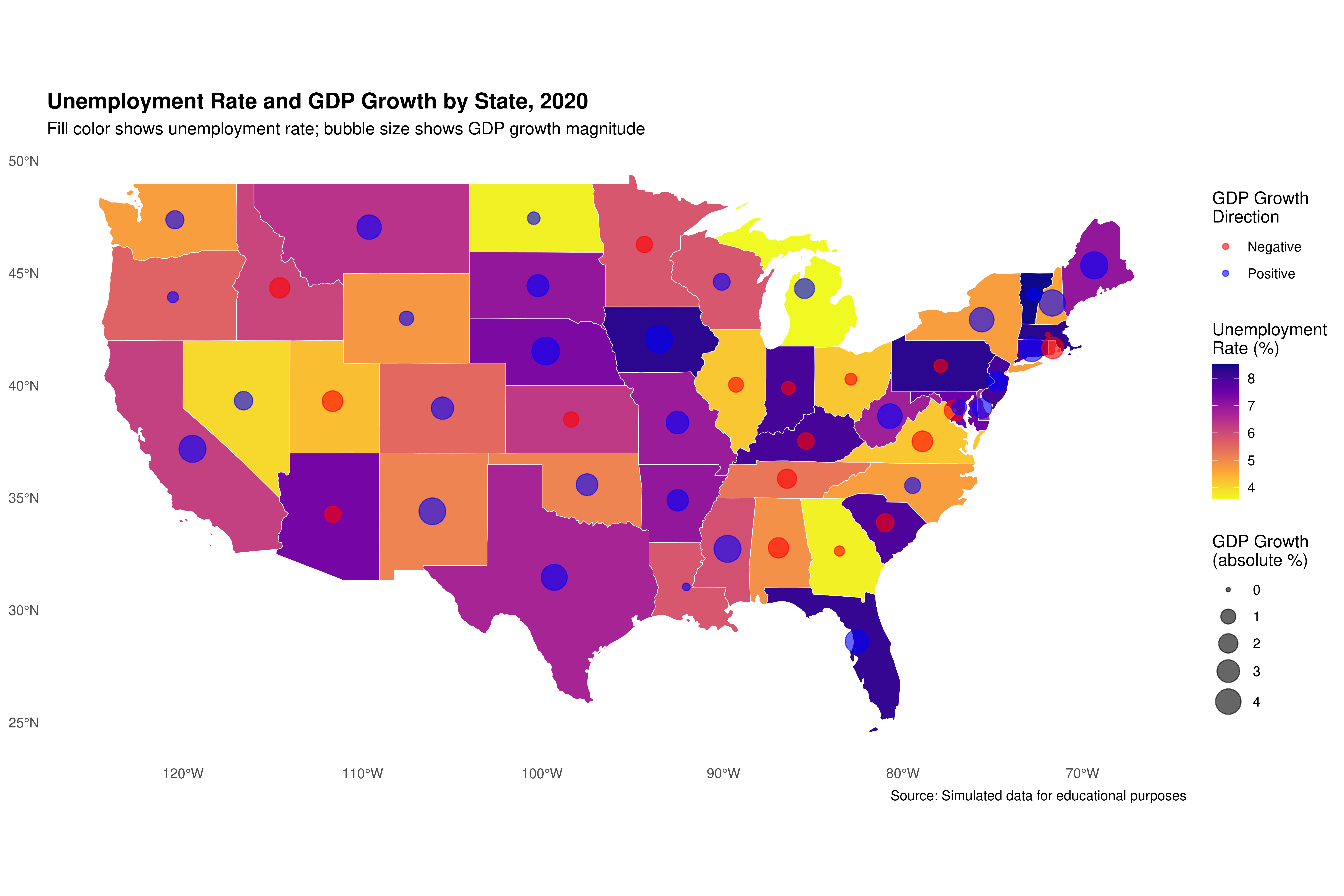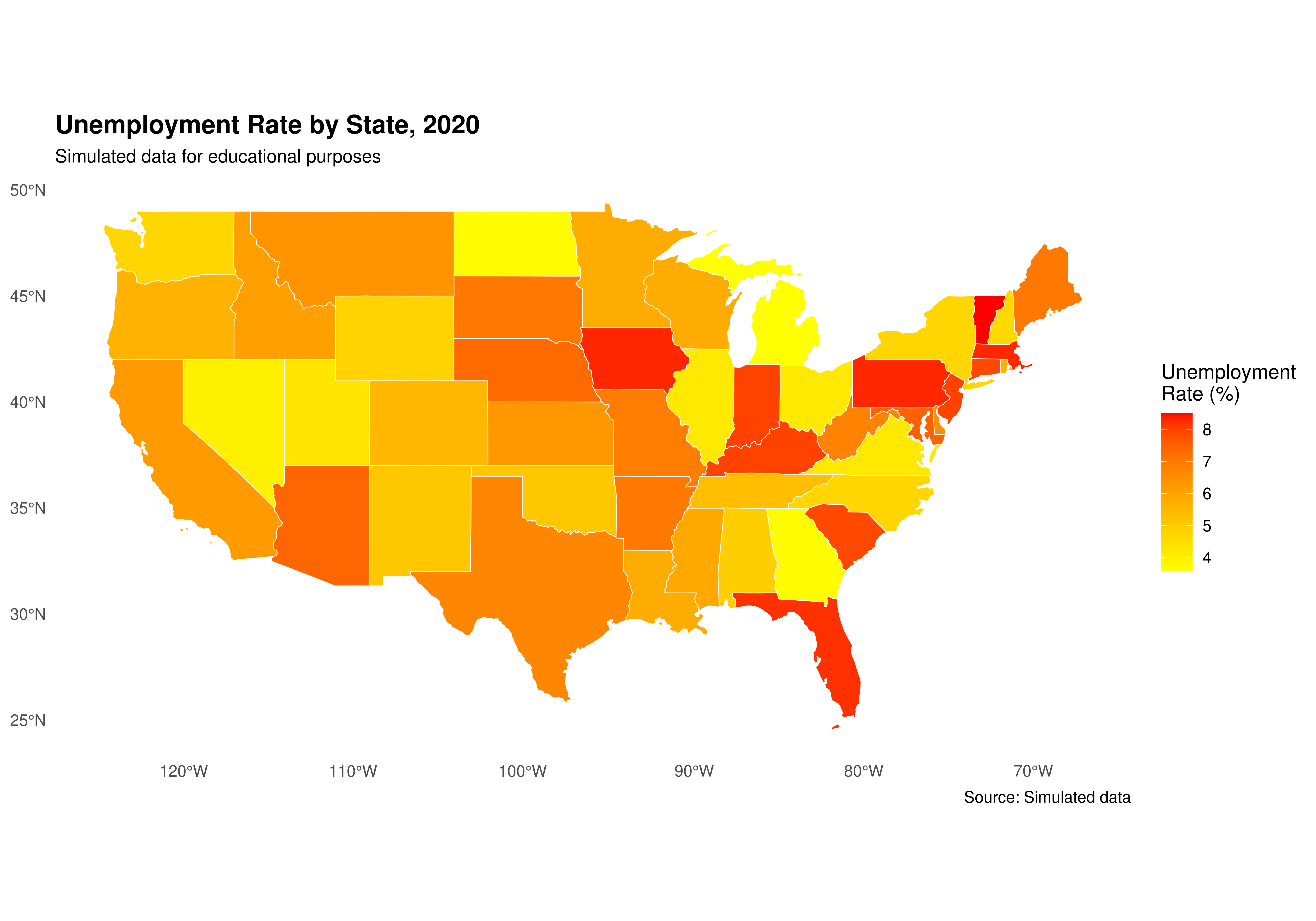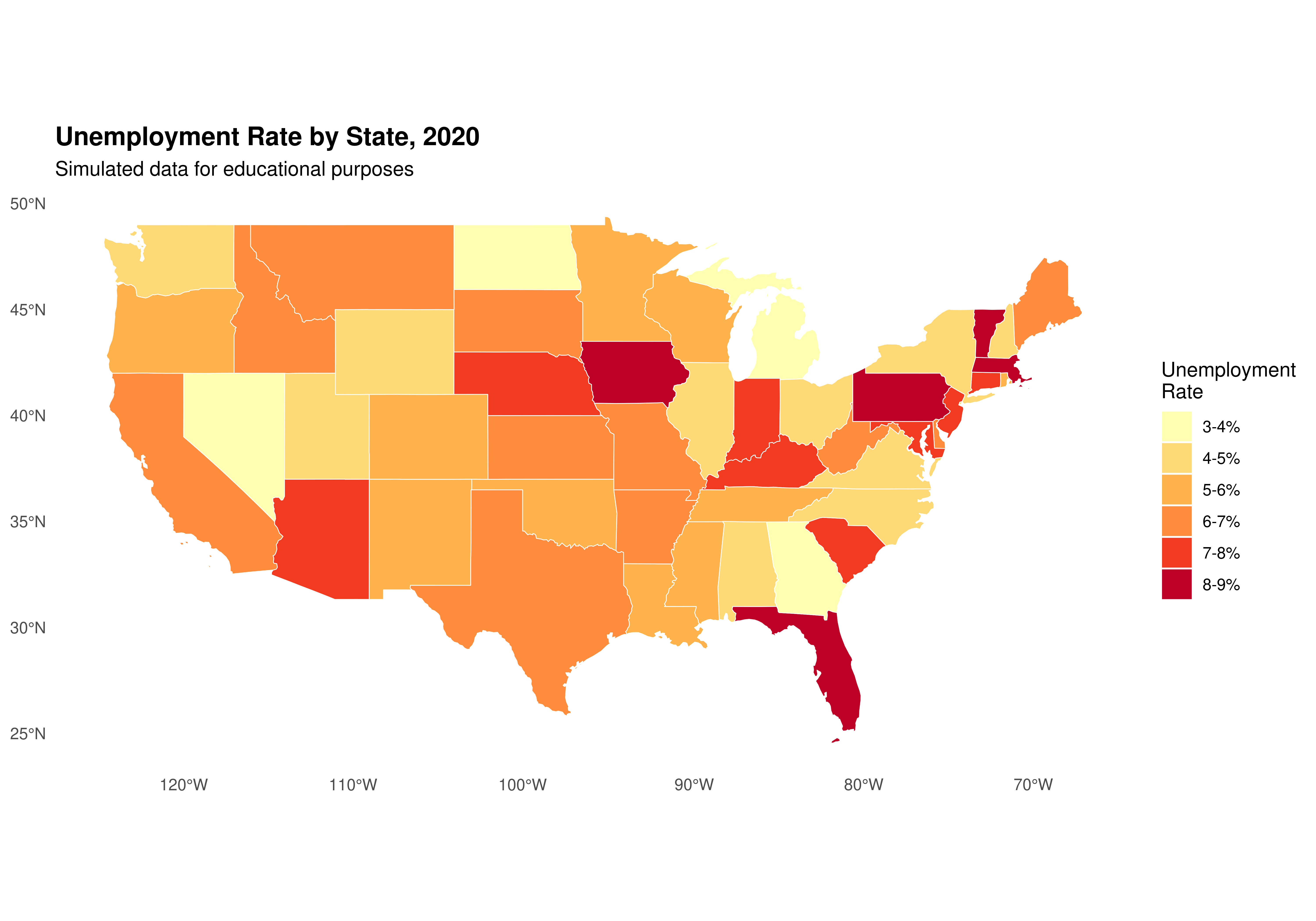 - Add annotations to highlight interesting patterns (e.g., highest/lowest unemployment states).