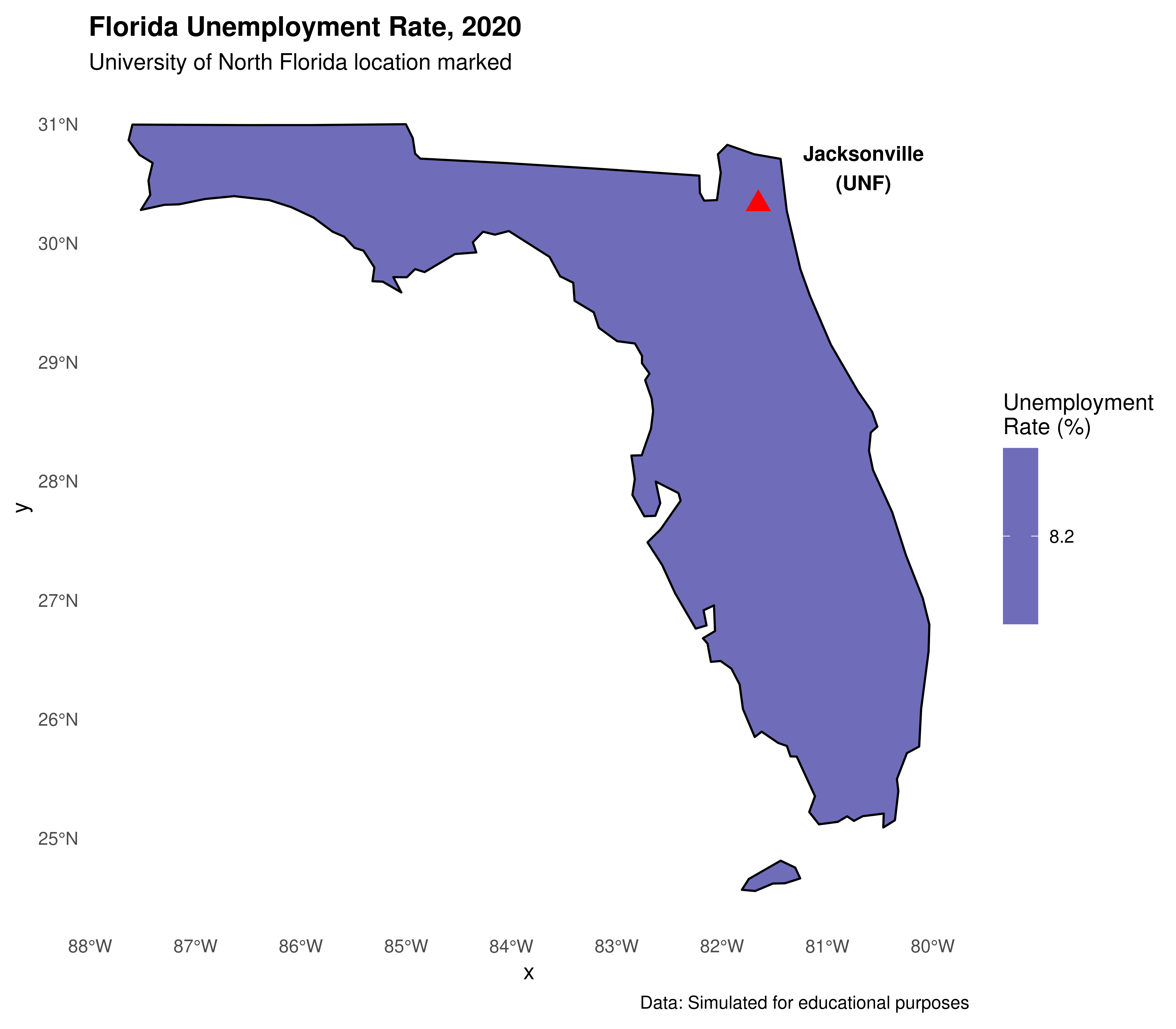 - Add a marker for Jacksonville and the UNF campus location (30.2672° N, 81.5102° W).